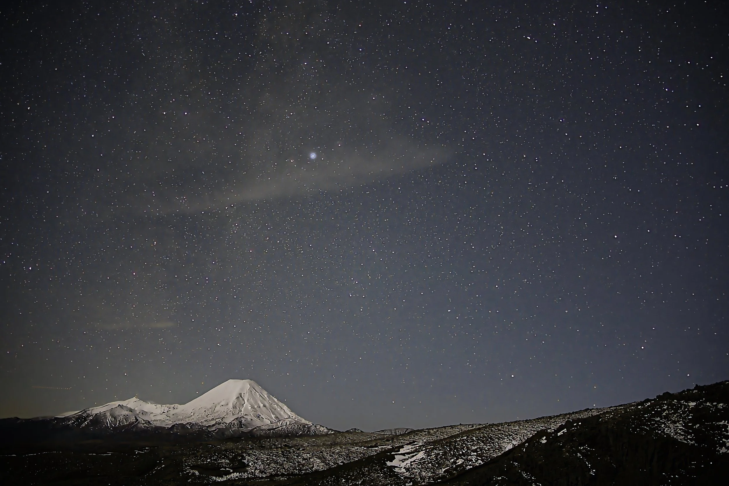 View upto a snowy Ruapehu