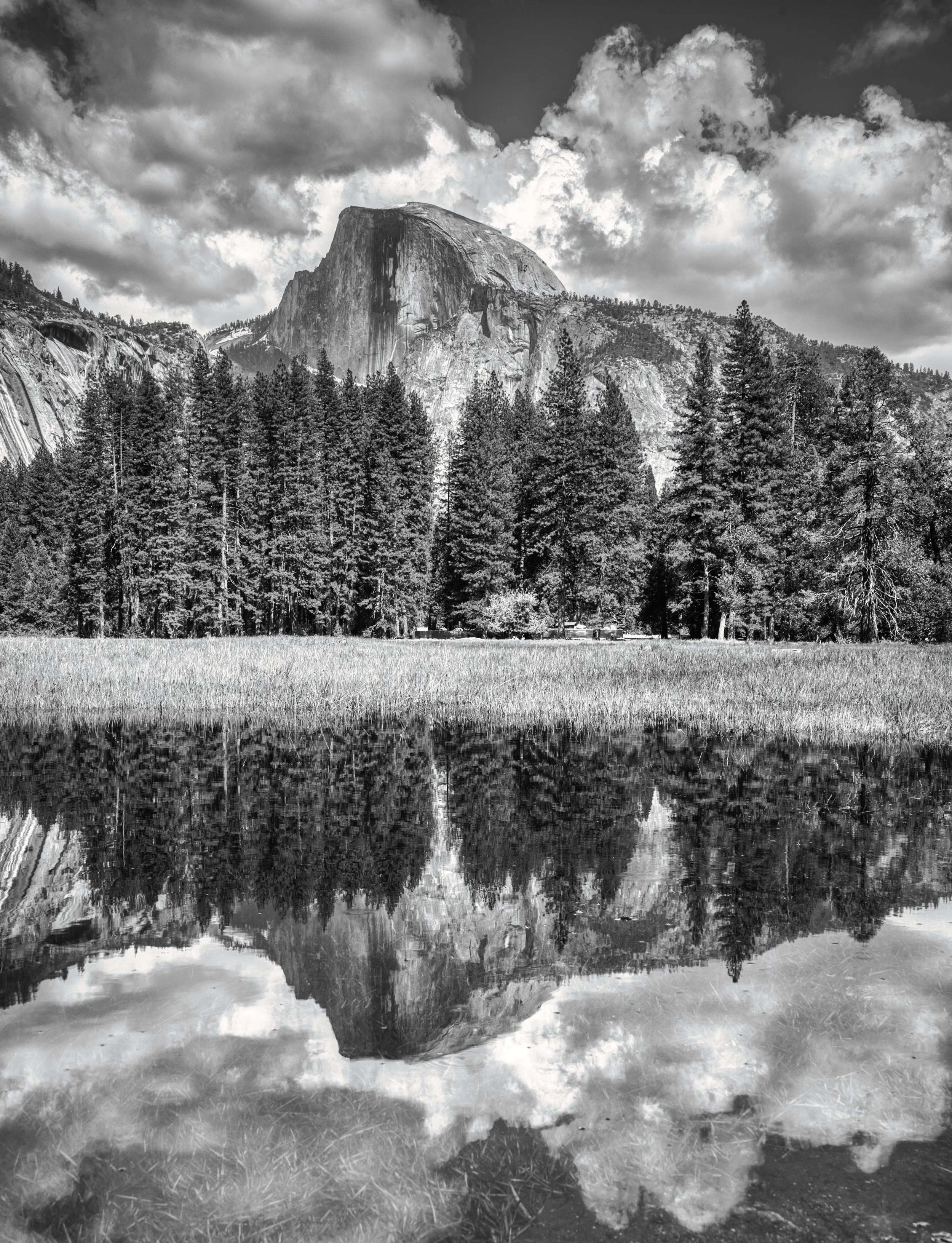 Reflection of Half Dome above the trees