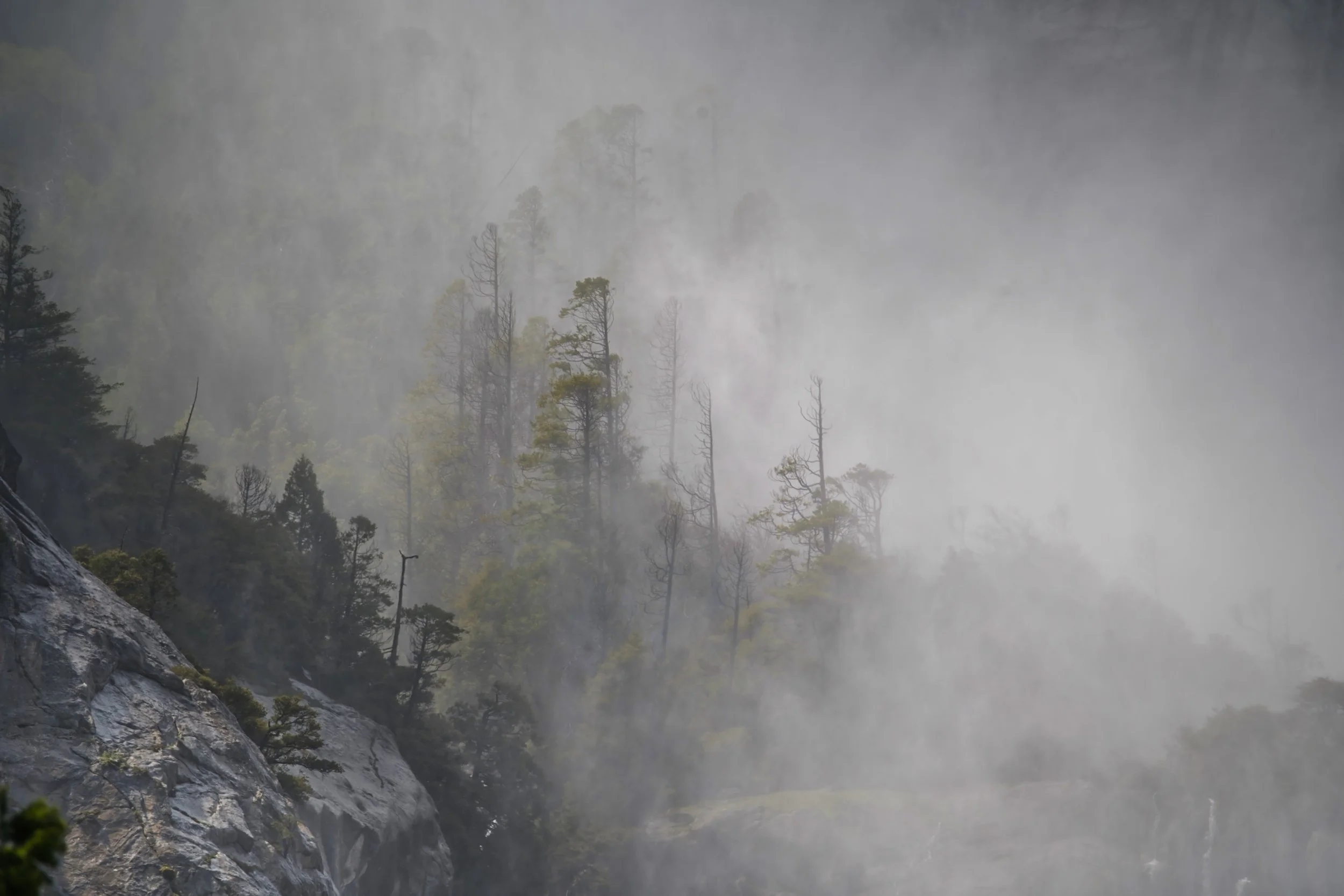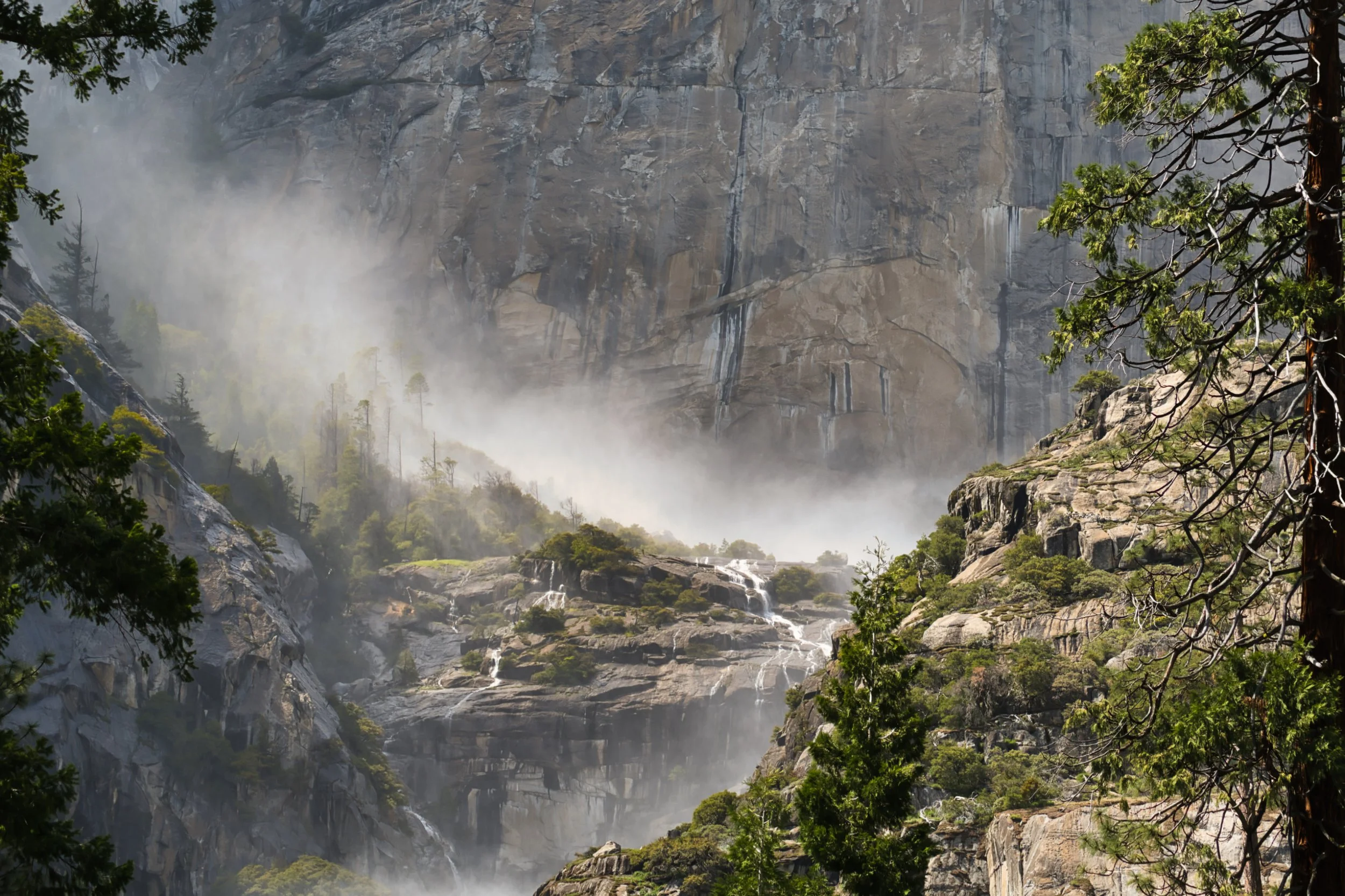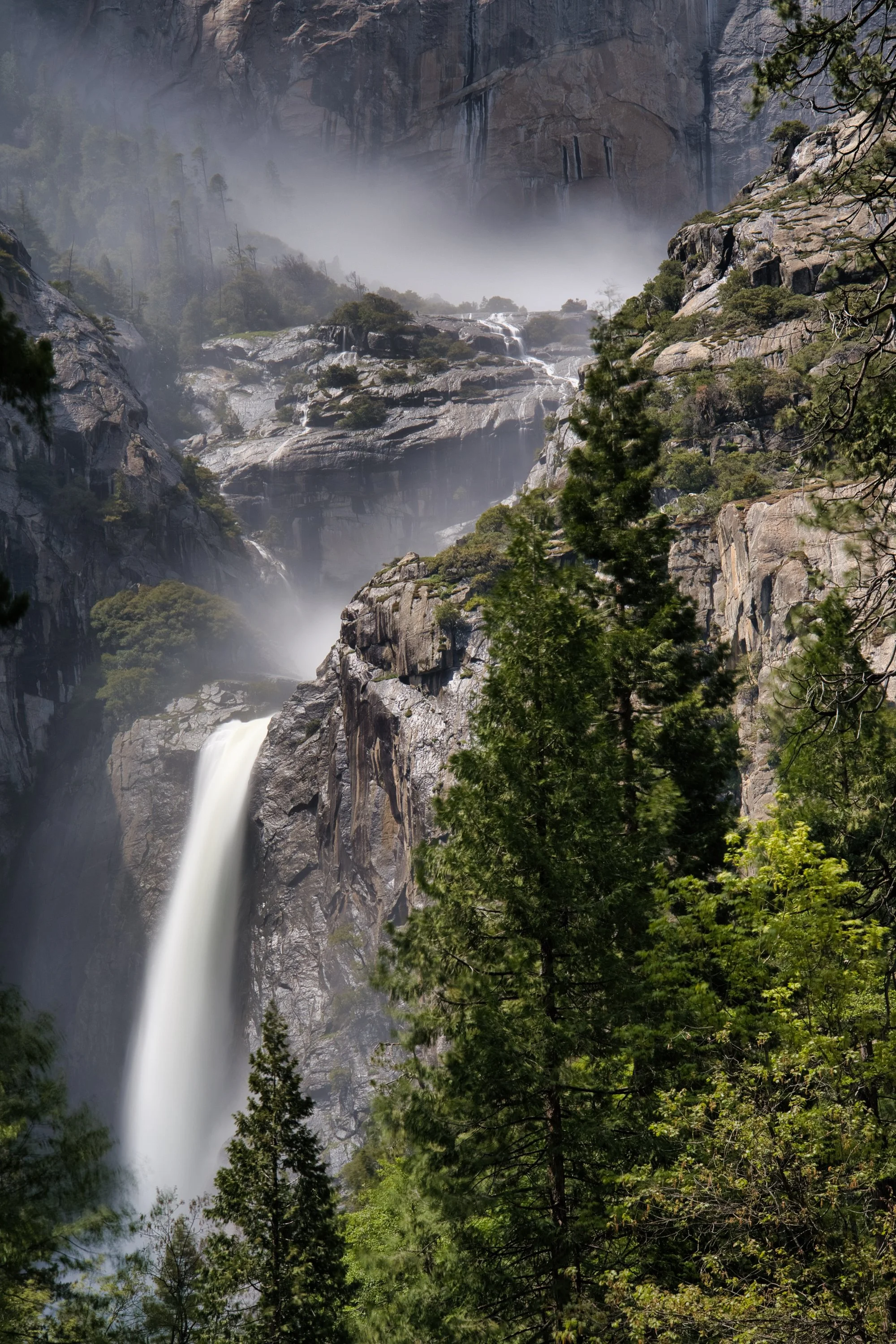 Detail of Yosemite Falls in mist